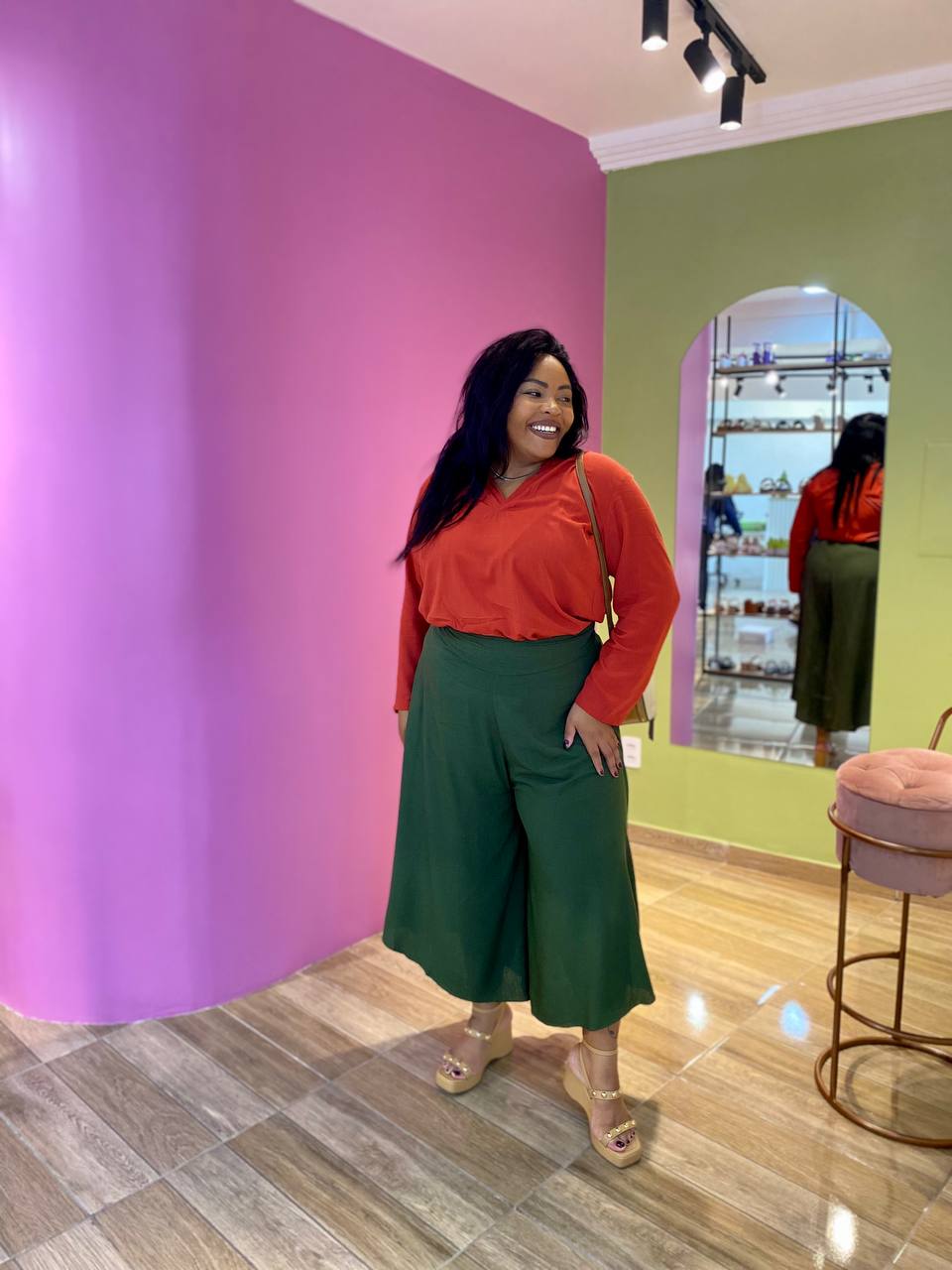Montamos a proposta do look com uma camisa manga longa, mais você pode se jogar nas opções.