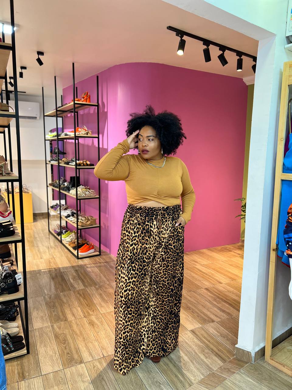A calça Gabi, tem um caimento perfeito! A cintura e alta com elástico triplo de alta qualidade que dá conforto e estabilidade.