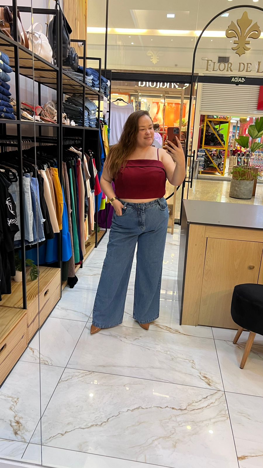 CALCA JEANS WIDE LEG 100%