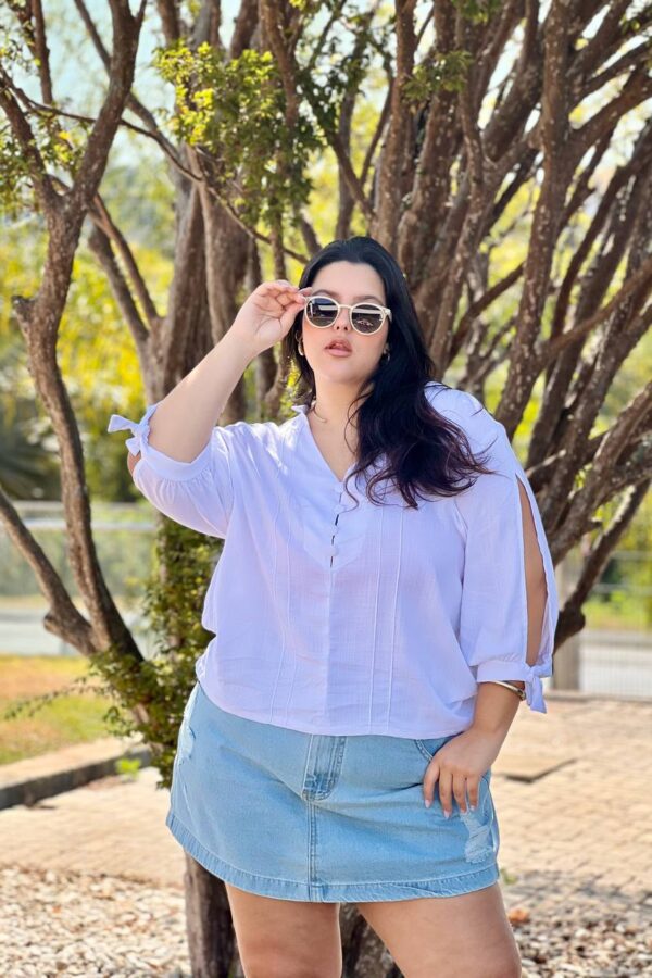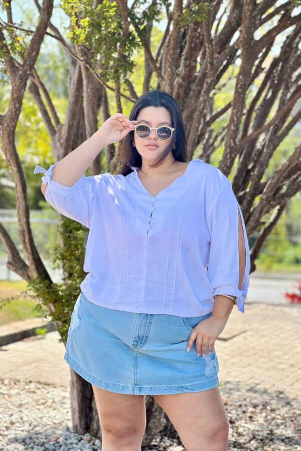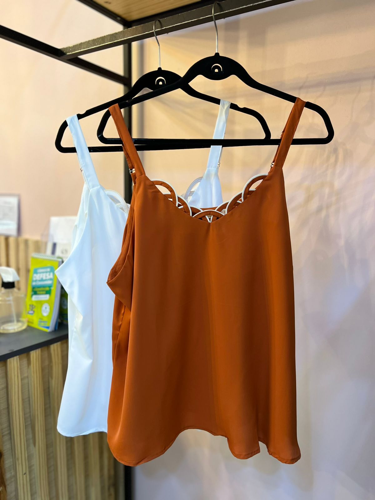 Esse modelo de regata tem um caimento perfeito, esse detalhe frontal com os recortes fica super sofisticado.